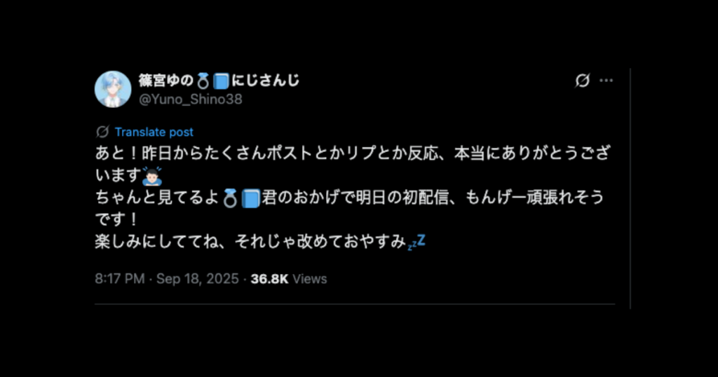 しかし、篠宮ゆのさんは睡眠が好きであると話しており、時々Xの投稿では「💤」のマークが使用されています。